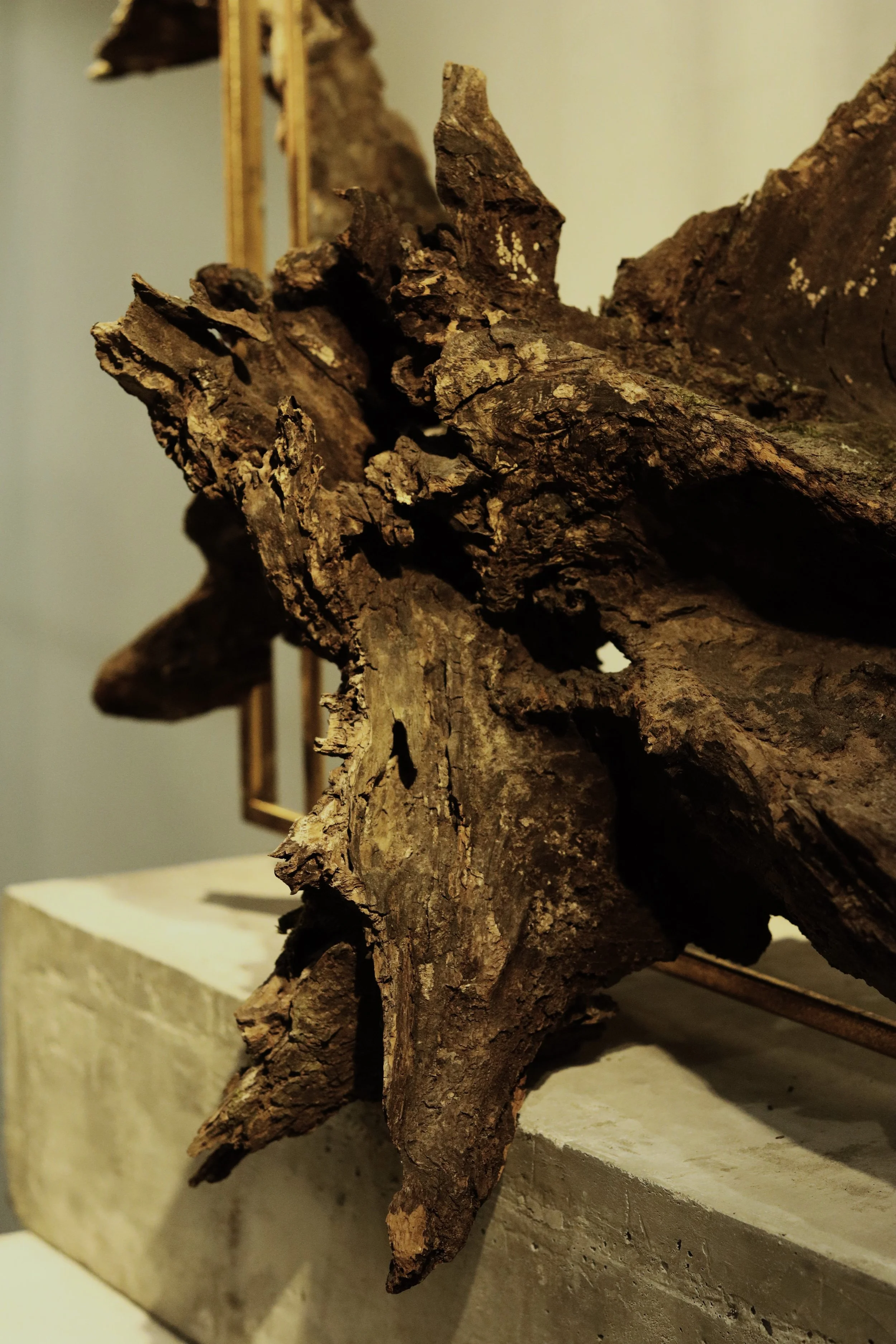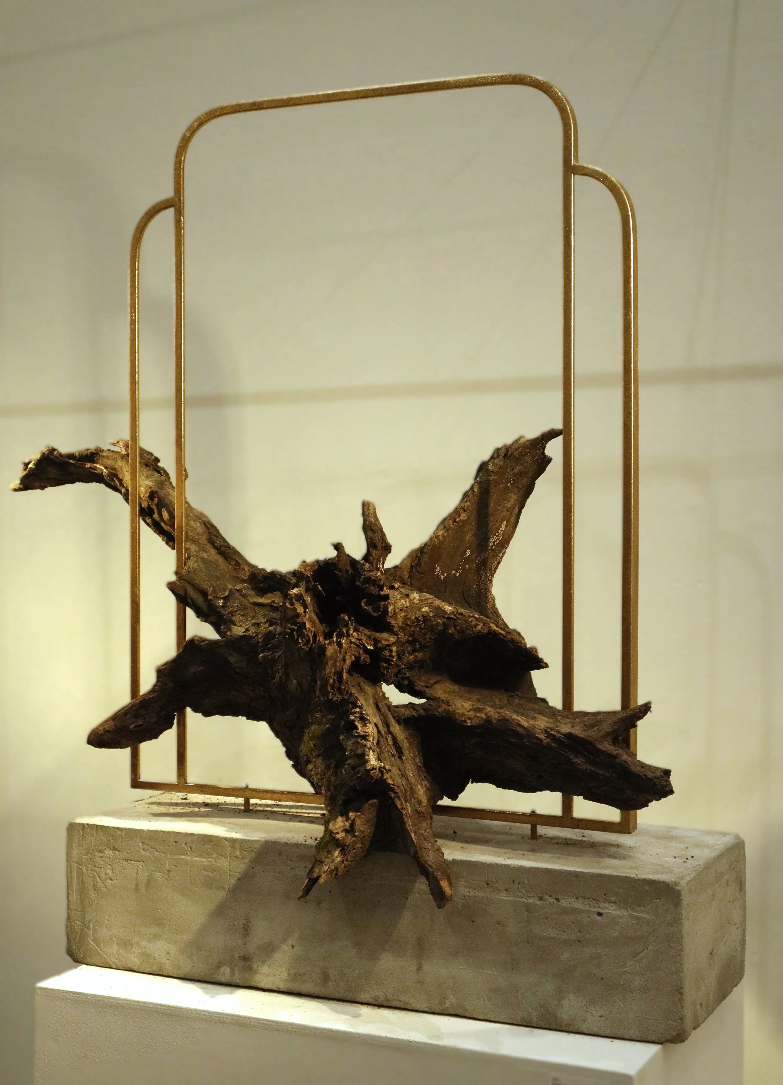 wood, concrete, found gilded frame