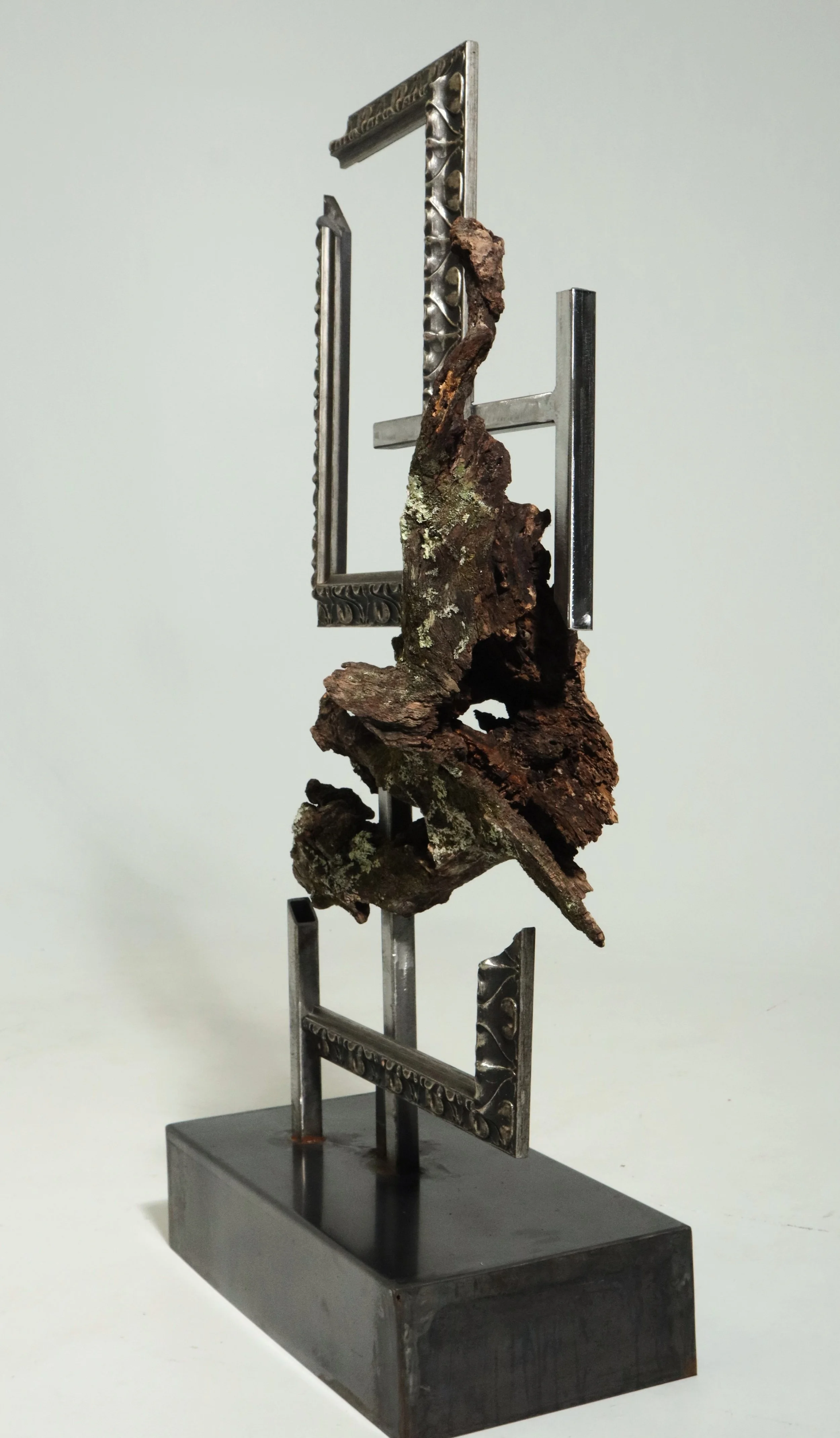 Metal, wood, found frame